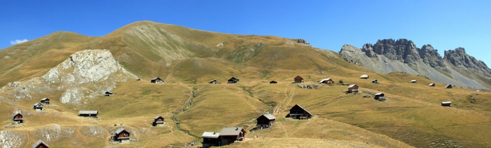 The jagged Croseras ridge dominates Villargaudin and the Combe du Guil with its imposing mass. The contrast with the gentler slopes of the Furfande chalets is striking. The elders of Arvieux refer to it as the "rocher de maranetch" (bad night), not knowing how the name Croseras came to appear on maps.